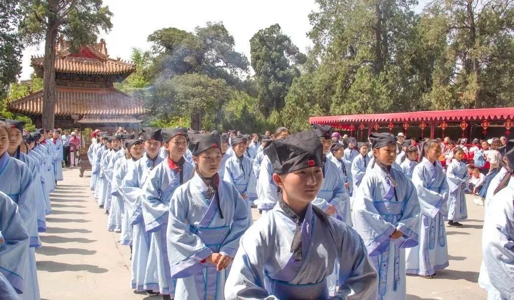 了解封建社会的家风在孔庙大成殿前举行盛大的拜师礼(着汉服,习古礼)